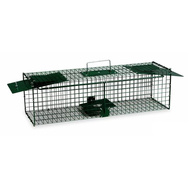 Les deux portes d’accès se ferment simultanément lorsque l’animal est au centre de la cage et marche sur le percuteur.