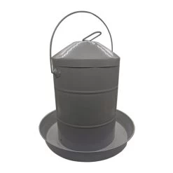 Un abreuvoir galvanisé peint en gris pour étancher la soif de vos volailles
