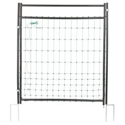 Kerbl a conçu cette porte adaptée aux filets à poules électrifiables d’une hauteur comprise entre 95 et 125 cm. Elle est fabriquée avec du fil supérieur de couleur verte aux connexions soudées pour une plus grande résistance.